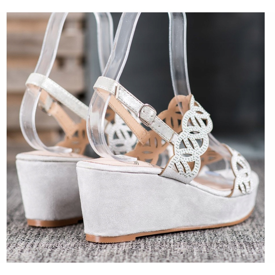 Les sandales compensées Aclys dans une élégante nuance de gris et d'argent sont un choix parfait pour les femmes qui souhaitent souligner leur style lors des sorties printanières et estivales. Ces chaussures classiques se distinguent par une plateforme de 7 centimètres, qui ajoute non seulement quelques centimètres de hauteur, mais assure également stabilité et confort pendant de longues périodes.