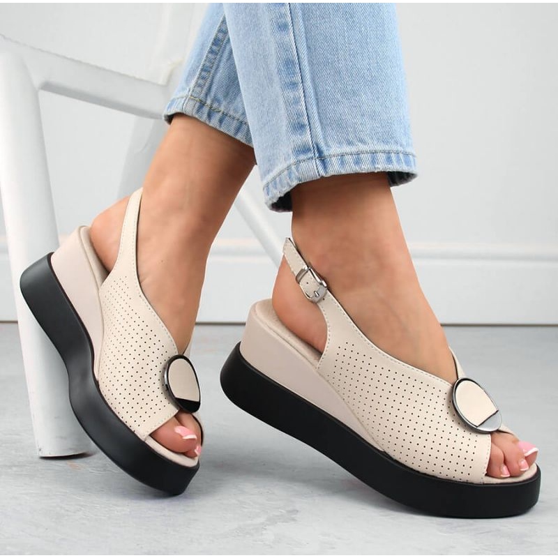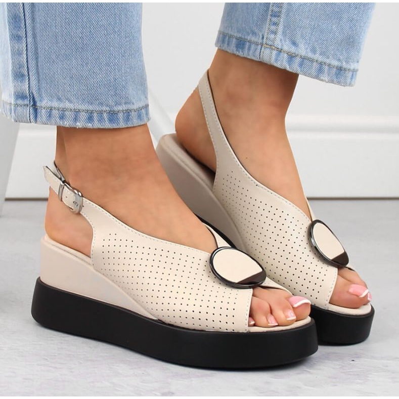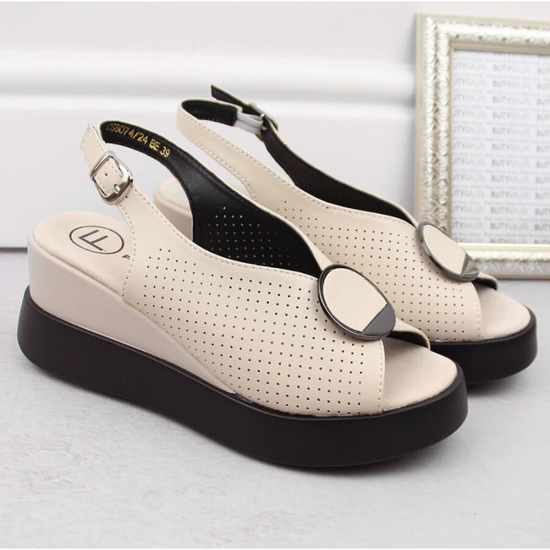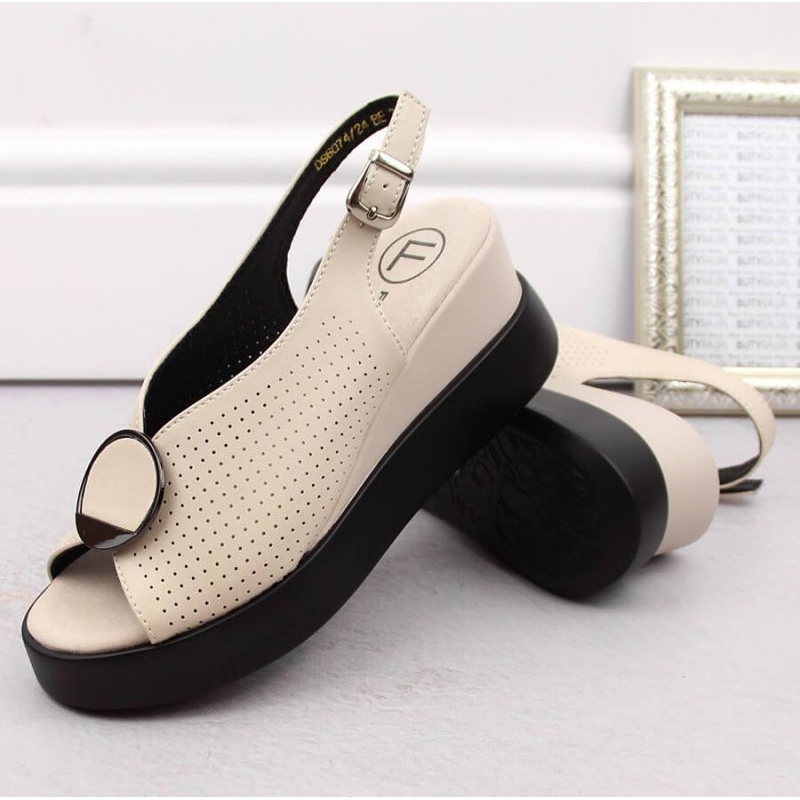 Détails: Sandales compensées ajourées en cuir Filippo W PAW530, beige