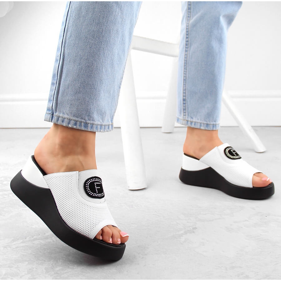 Détails: Sandales compensées ajourées en cuir pour femme, blanc Filippo DK6141 blanche