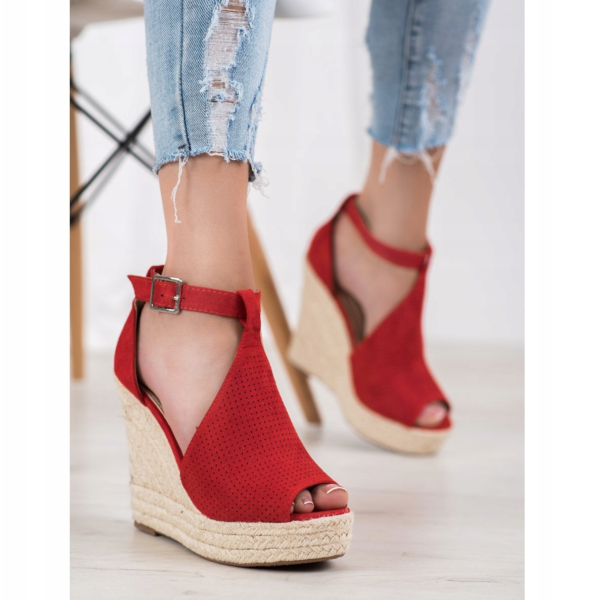 Détails: SHELOVET Sandales compensées ajourées rouge