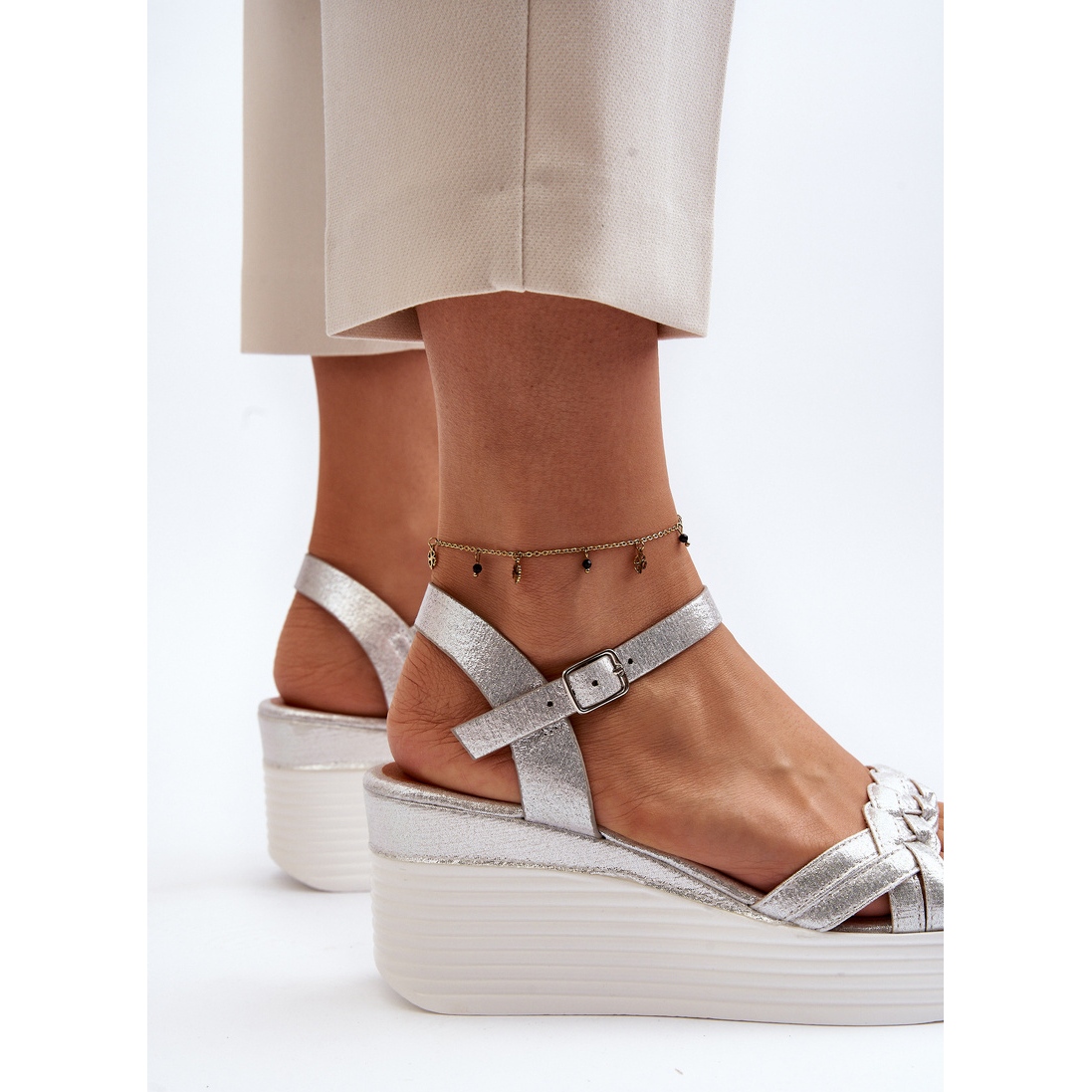 Les sandales compensées pour femmes d'une belle couleur argentée d'Esinna sont un complément parfait au style estival pour toute femme qui valorise l'élégance alliée au confort. Ces sandales en cuir écologique au design classique se distinguent non seulement par leur aspect unique, mais aussi par leur finition bien pensée, conçue pour assurer un confort maximal lors des journées chaudes.