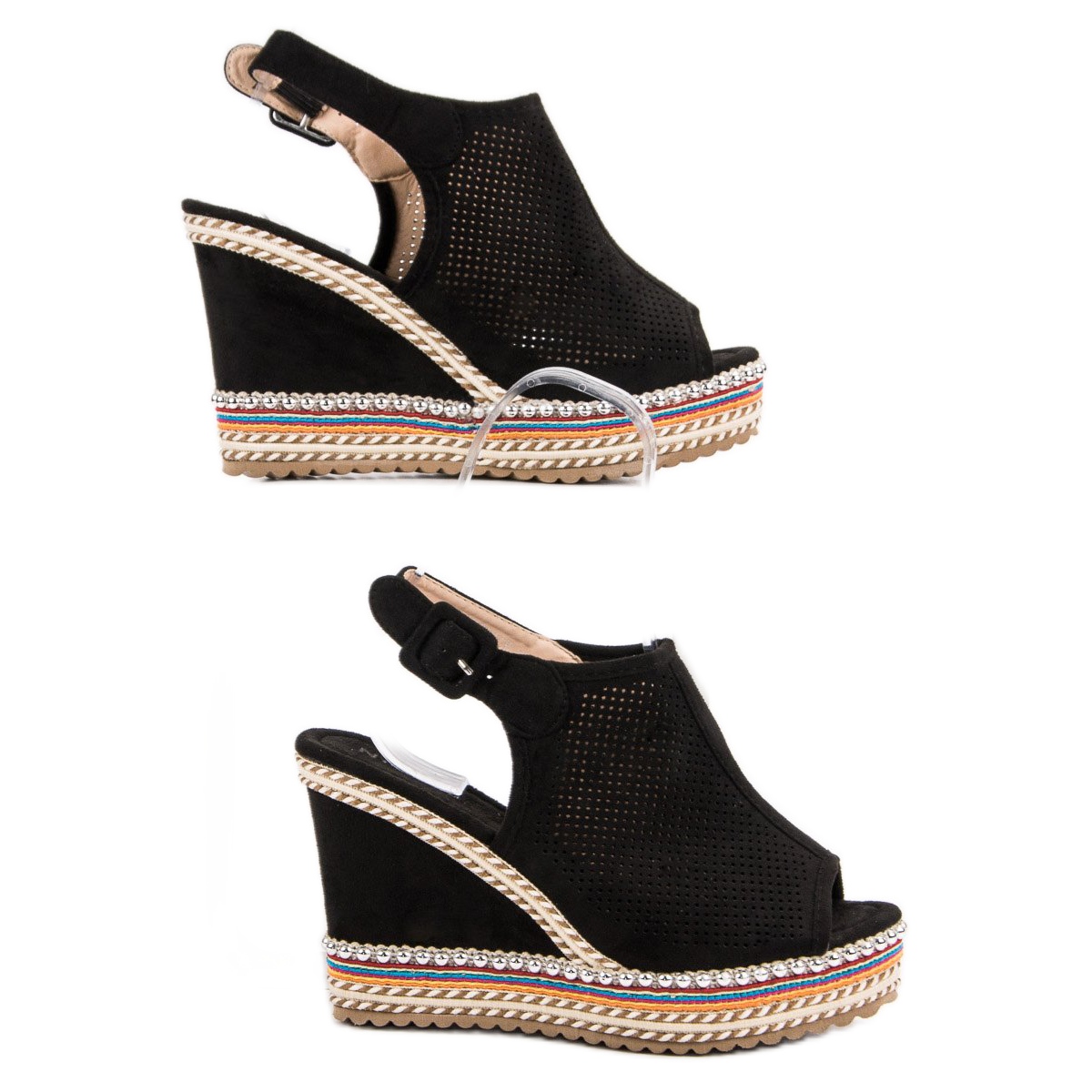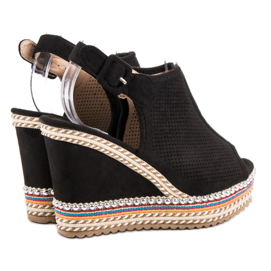 Découvrez l'élégance et le confort avec les sandales compensées Nio Nio en noir. Ces chaussures accrocheuses sont le choix parfait pour toutes les femmes qui souhaitent allier design original et universalité. La structure ajourée assure non seulement une ventilation adéquate, mais ajoute également un caractère contemporain à tout style.