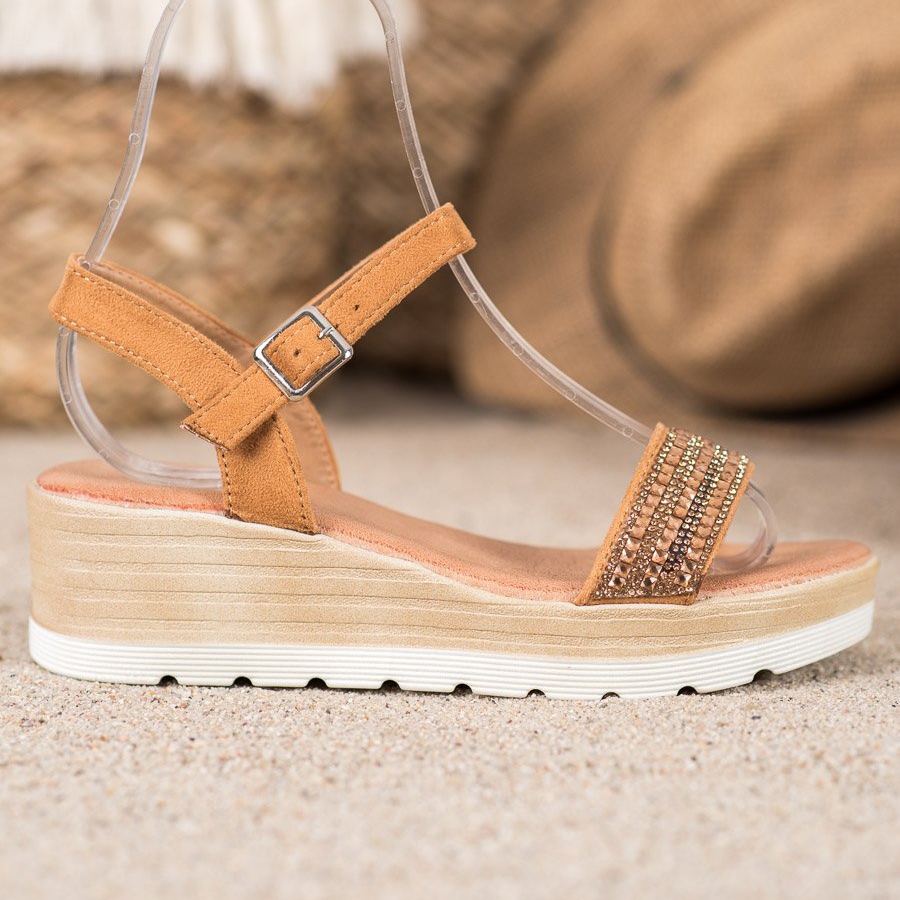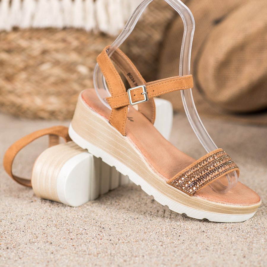 Nous vous présentons les élégantes sandales compensées Renda, qui seront un choix parfait pour les journées de printemps et d'été. Ces sandales marron avec cristaux sont la combinaison parfaite de style et de confort. Fabriqués en cuir écologique de haute qualité, ils offrent non seulement un aspect esthétique, mais également un confort de port.