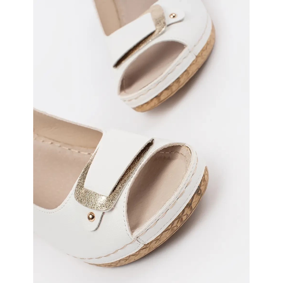 Les sandales espadrilles blanches à talon bas, en cuir écologique de haute qualité, se caractérisent non seulement par leur style, mais aussi par leur souci de l'environnement. Avec une semelle et une bande de roulement en plastique solide beige, elles offrent stabilité et traction.