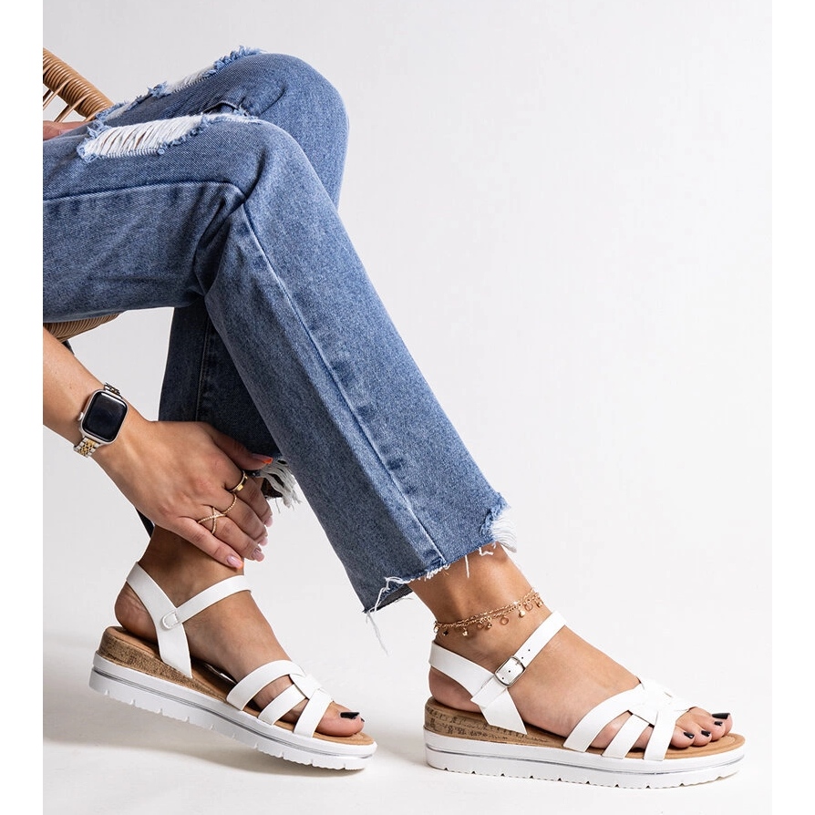Les sandales compensées basses blanches sont une combinaison d'élégance, de confort et de choix conscient. Les designers ont décidé d'utiliser du cuir écologique, ce qui fait de ces sandales un choix respectueux de l'environnement. Leur couleur blanche universelle, combinée à une forme classique, en fait un complément parfait à toute tenue estivale, des jeans décontractés aux robes aériennes.