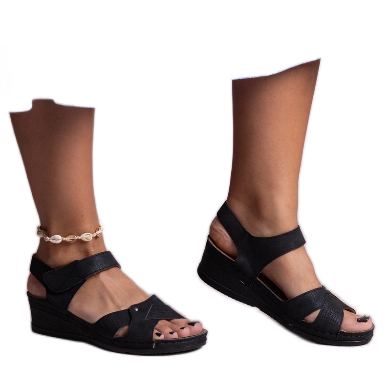 Grâce à ses couleurs classiques et noires et à une coupe minimaliste, ces sandales se mélangent parfaitement avec diverses stylisations d'été. Le coin bas avec une hauteur de 6 cm les rend extrêmement confortables, et en même temps ajouter une hauteur subtile, grâce à laquelle les jambes semblent plus longues et plus minces.