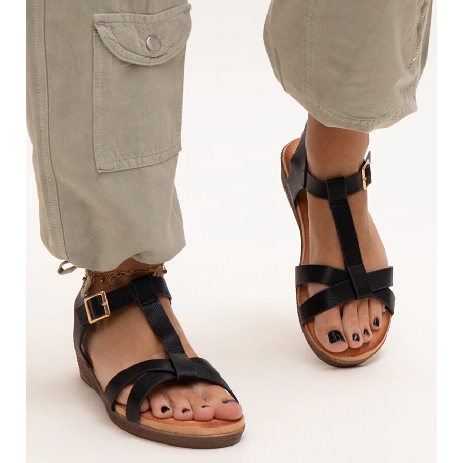 Les sandales sont fabriquées en cuir écologique de haute qualité, ce qui les rend respectueuses de l'environnement sans perdre en durabilité et en esthétique. La couleur noire avec des accents beiges rend les chaussures extrêmement faciles à assortir à différentes couleurs et styles de garde-robe.