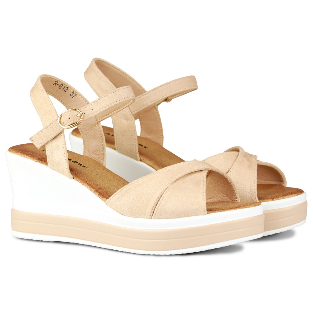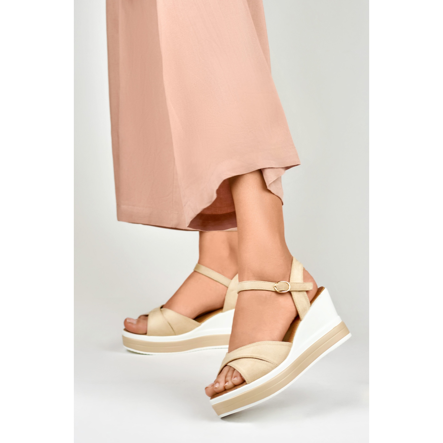 Nous vous présentons de confortables sandales compensées beiges de la célèbre marque KeeShoes, qui seront le choix parfait pour les journées de printemps et d'été. Fabriquées en daim écologique de haute qualité, ces sandales élégantes s'adaptent parfaitement aux tendances actuelles tout en assurant un confort de port.