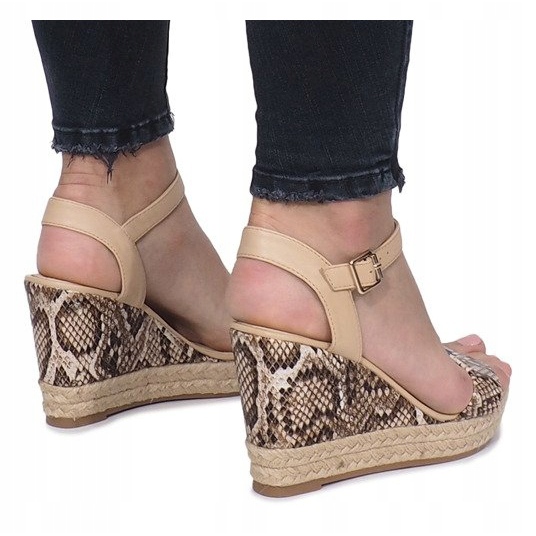 Les sandales compensées espadrilles Busy beiges sont le choix parfait pour les journées d'été, car elles allient confort et motif oriental tendance avec des motifs animaliers. Ces sandales uniques se caractérisent par une cale haute et stable, qui non seulement ajoute de l'élégance, mais affine également la silhouette. Leurs nuances neutres de marron et de beige les rendent parfaitement assorties à une variété de styles estivaux, des robes aériennes aux shorts décontractés.