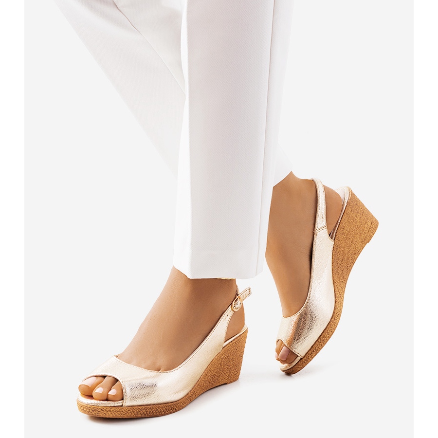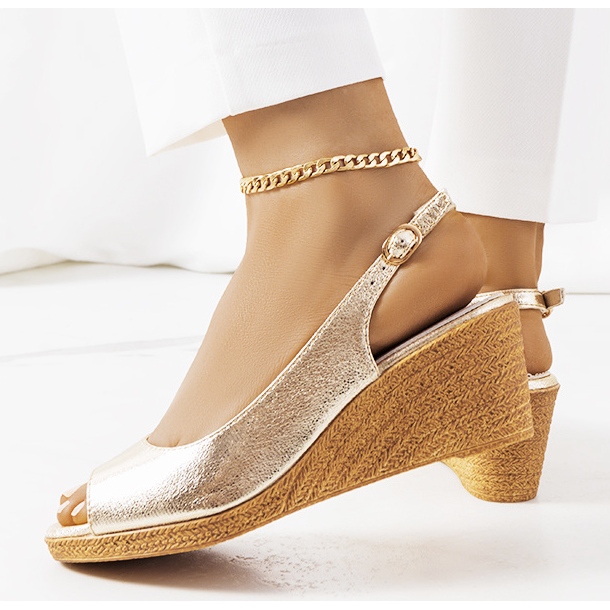 Détails: BM Sandales compensées Beldes dorées d'or