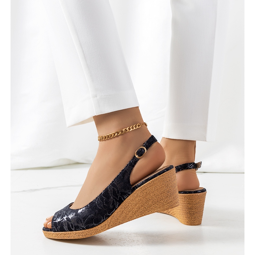 Les sandales compensées noires Beldesa sont un incontournable de chaque saison estivale ! Ces chaussures élégantes allient élégance et confort, ce qui les rend parfaites aussi bien pour un usage quotidien que pour des occasions plus formelles. Fabriqués en cuir suédé écologique de haute qualité, ils sont extrêmement impressionnants et leur subtil imprimé floral leur confère un caractère unique.
