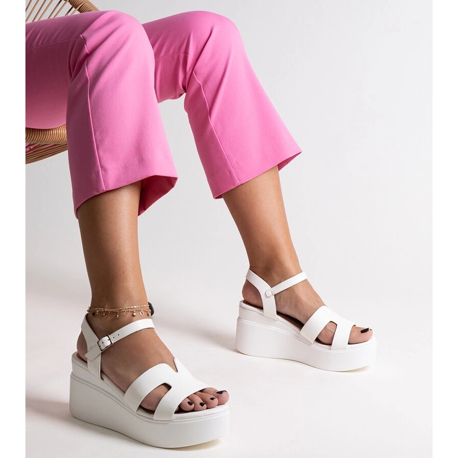 Les sandales compensées blanches sont la quintessence de l’élégance estivale alliée au confort. Fabriqués par une marque appréciée, bien que peut-être légèrement moins connue, ils attirent l'attention par leur design frais et épuré. Le matériau dans lequel ils sont fabriqués est un cuir écologique de haute qualité, ce qui les rend respectueux de l'environnement, légers et extrêmement durables - parfaits pour être portés même pendant les journées les plus chaudes.