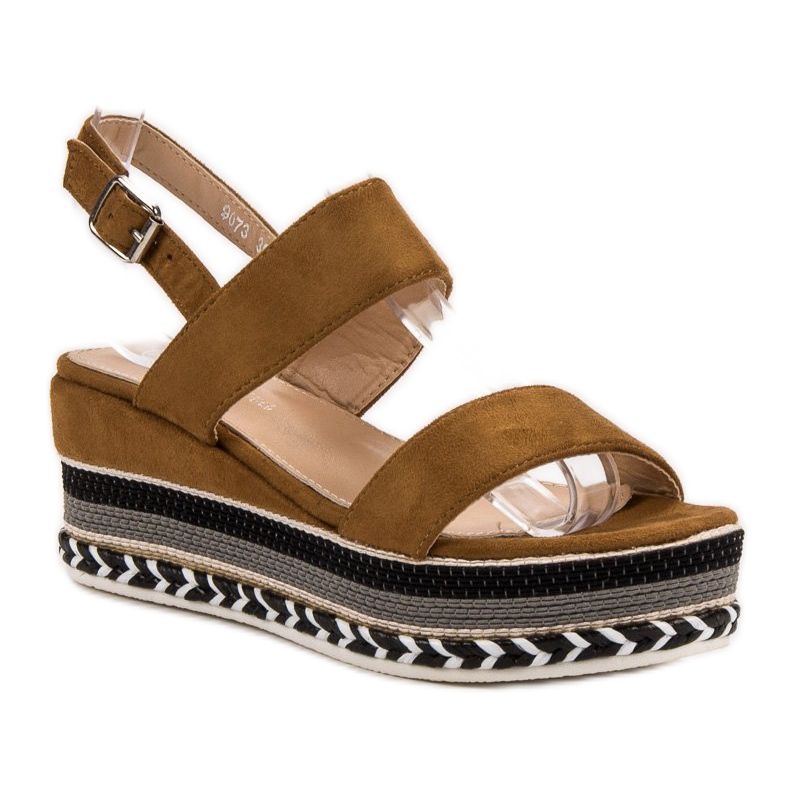 Nous vous présentons de magnifiques sandales compensées Primavera dans une nuance de caramel saturé, qui s'adaptent parfaitement aux dernières tendances bohèmes. Fabriquées en cuir éco-daim de haute qualité, ces chaussures élégantes allient style et confort.