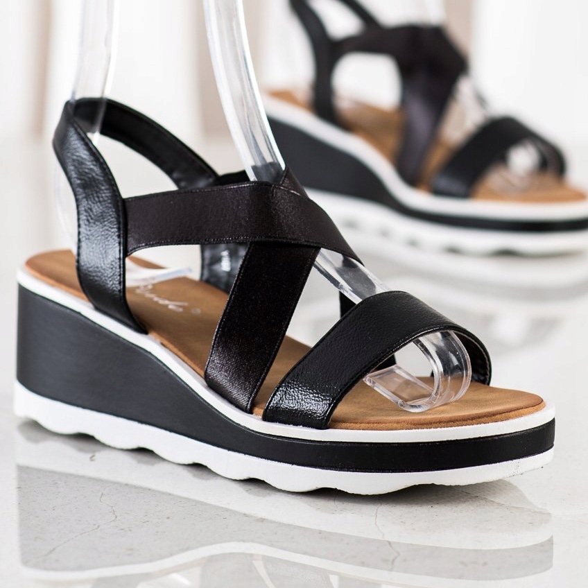 Weide Weide Sandales compensées brillantes le noir