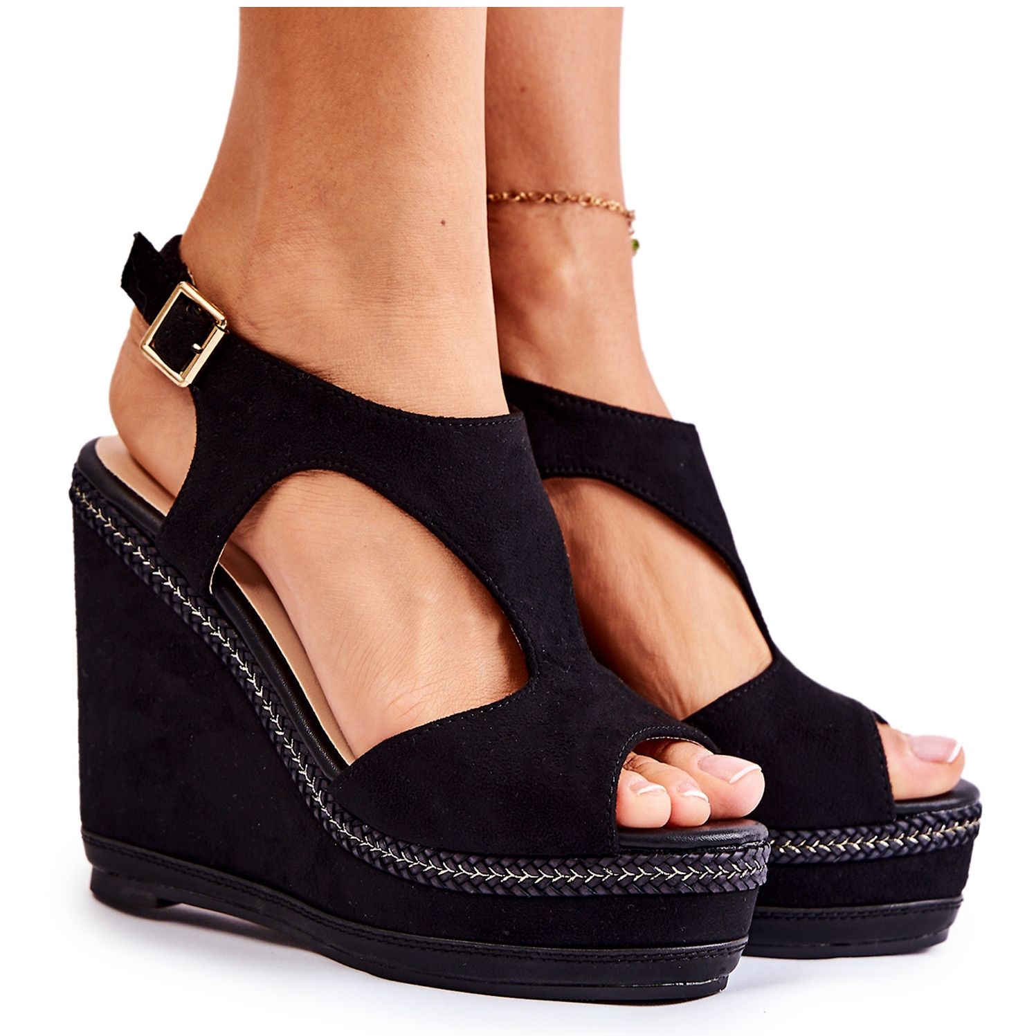 Une cale de 12,5 cm de haut et une plate-forme de 4,5 cm de haut soulignent non seulement la silhouette, mais assurent également la stabilité dans la marche. De plus, la décoration tressée tendance ajoute un peu d'originalité au look, faisant de ces sandales un ajustement parfait pour une variété de styles – du décontracté à l'élégant.