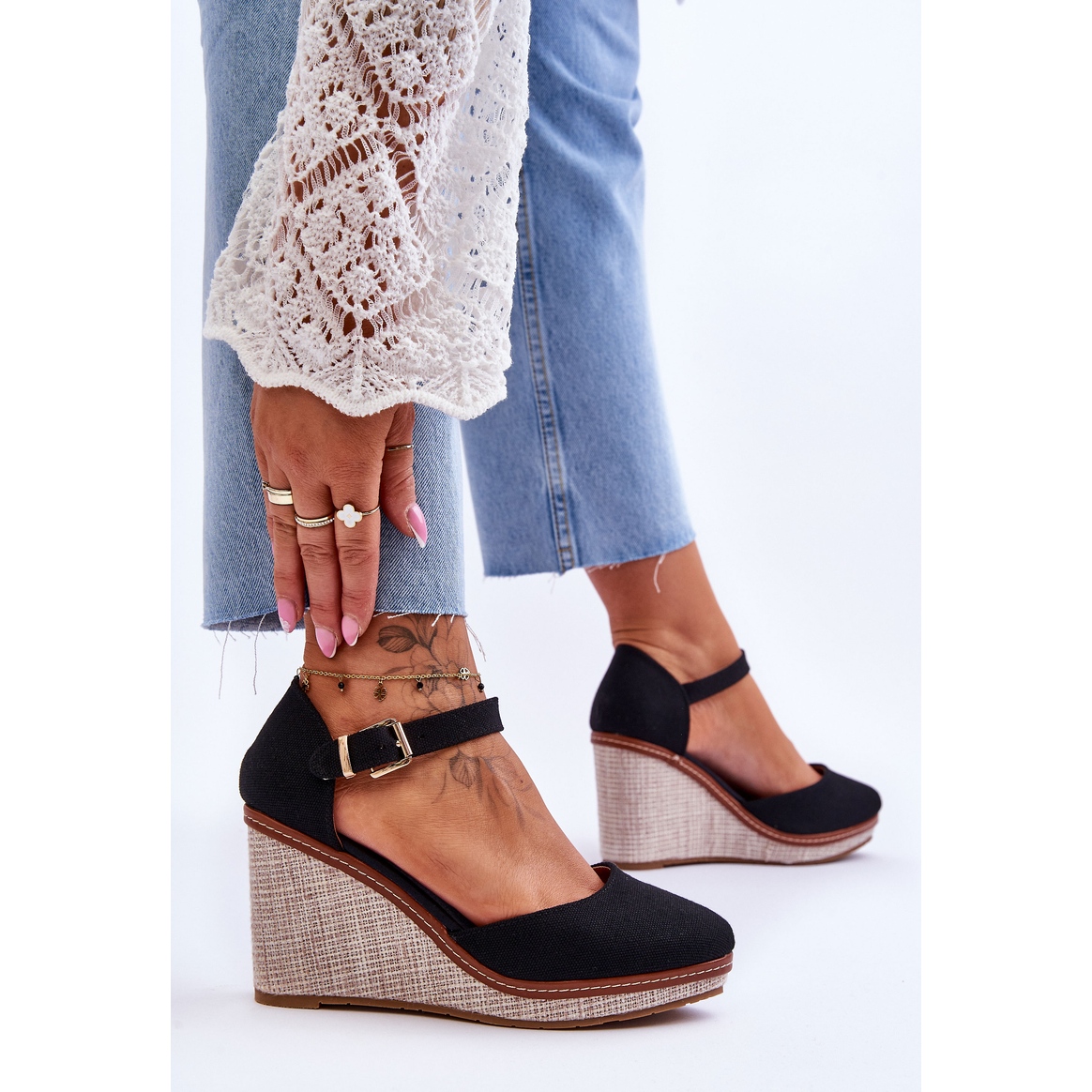 **Sandales compensées classiques PS1 pour femmes noires Malani – élégance avec une touche de confort**