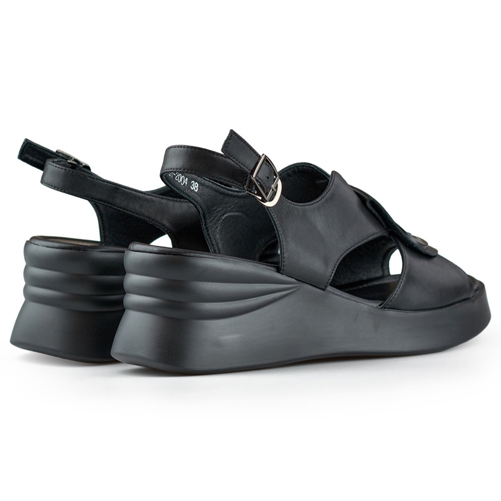 Sandales compensées confortables en cuir naturel pour femmes noires