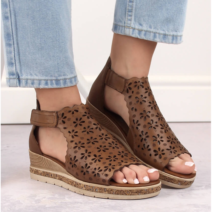 - Modèle: Sandales compensées en cuir confortables pour femmes