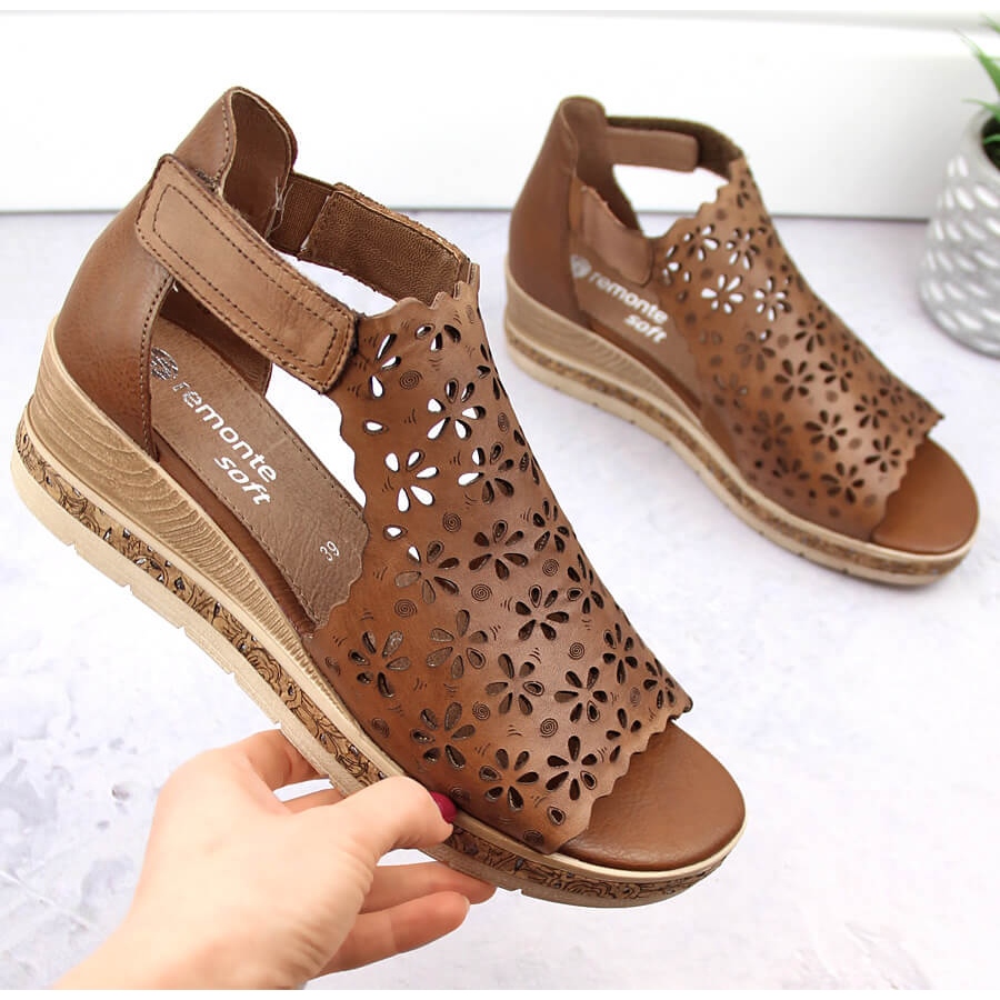 Détails: Sandales compensées confortables en cuir pour femmes, marron, Remonte D3056-24 brun