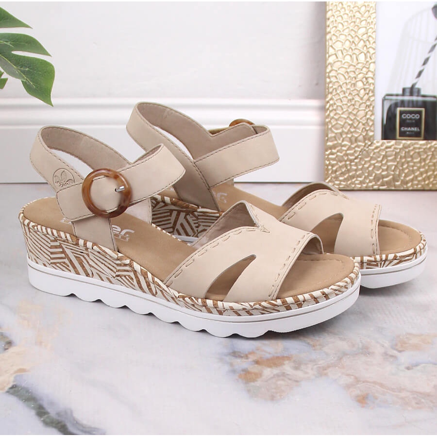 Détails: Sandales compensées confortables pour femmes beige Rieker 67173-60