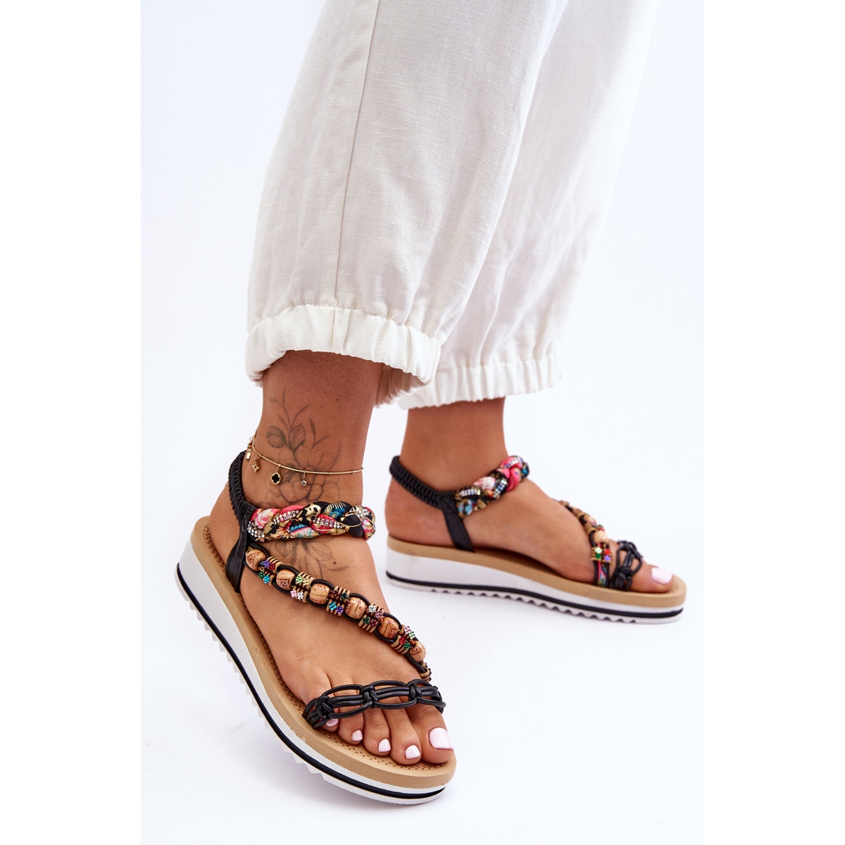 Nous vous présentons des sandales compensées pour femmes élégantes et confortables - le modèle Jodie dans une couleur noire classique. Fabriquées à partir d'une combinaison de cuir écologique et de tissu de haute qualité, ces sandales impressionnent par leur design tendance et leur souci du détail. Les rayures ornées de strass et de perles leur confèrent un caractère unique, ce qui les rend parfaites aussi bien pour un usage quotidien que pour les sorties estivales.