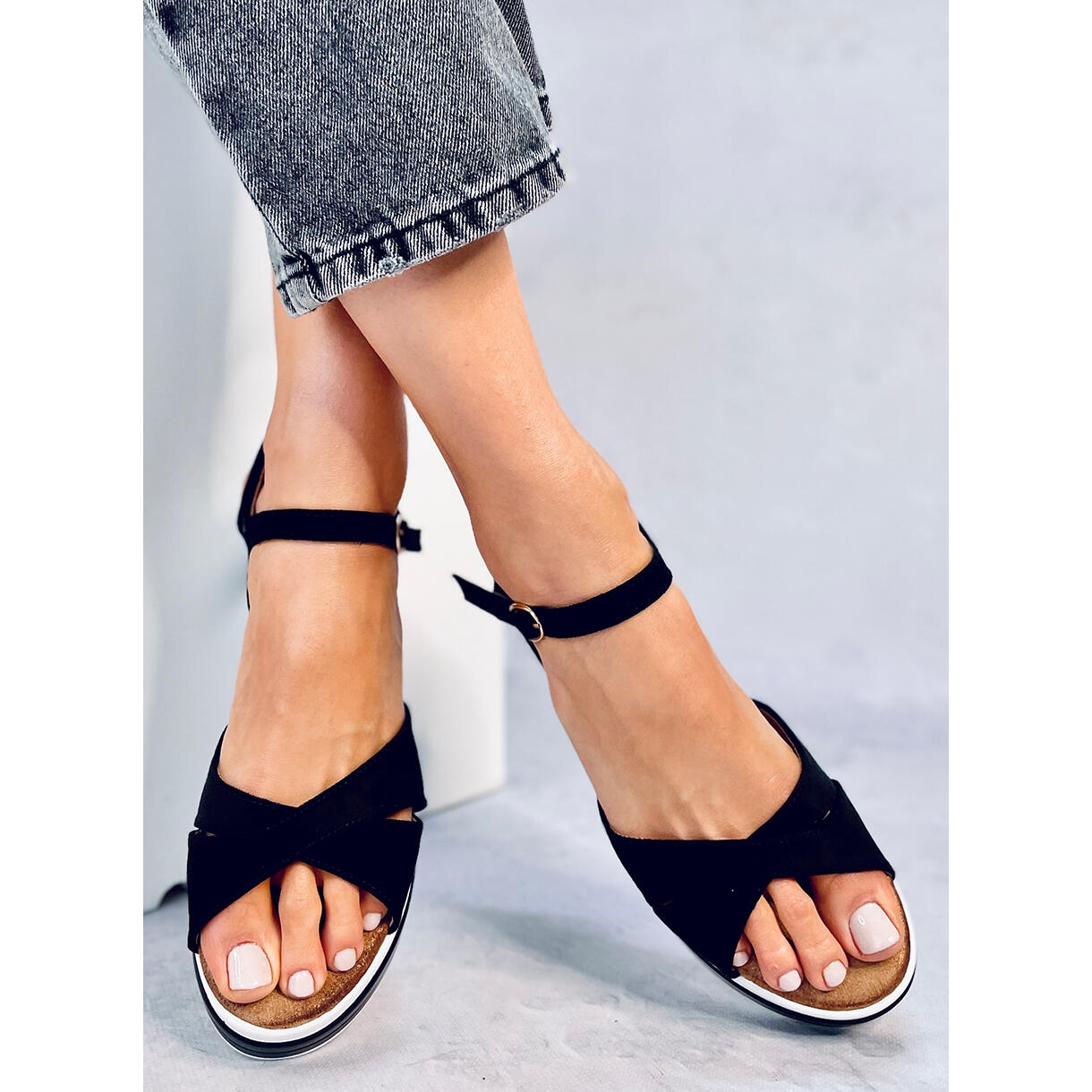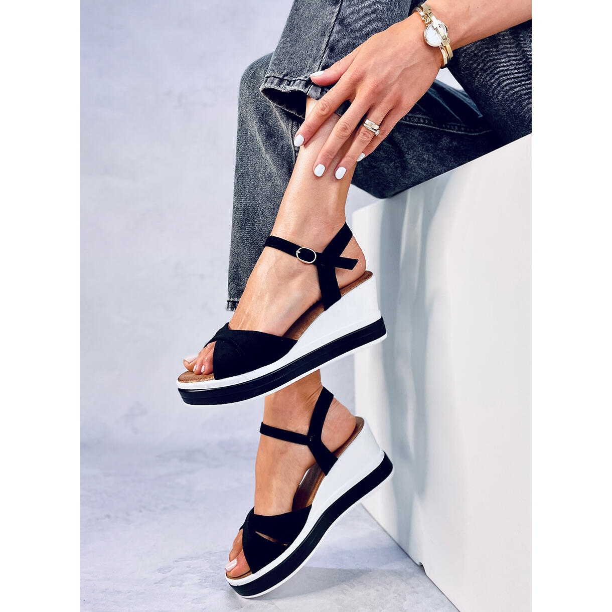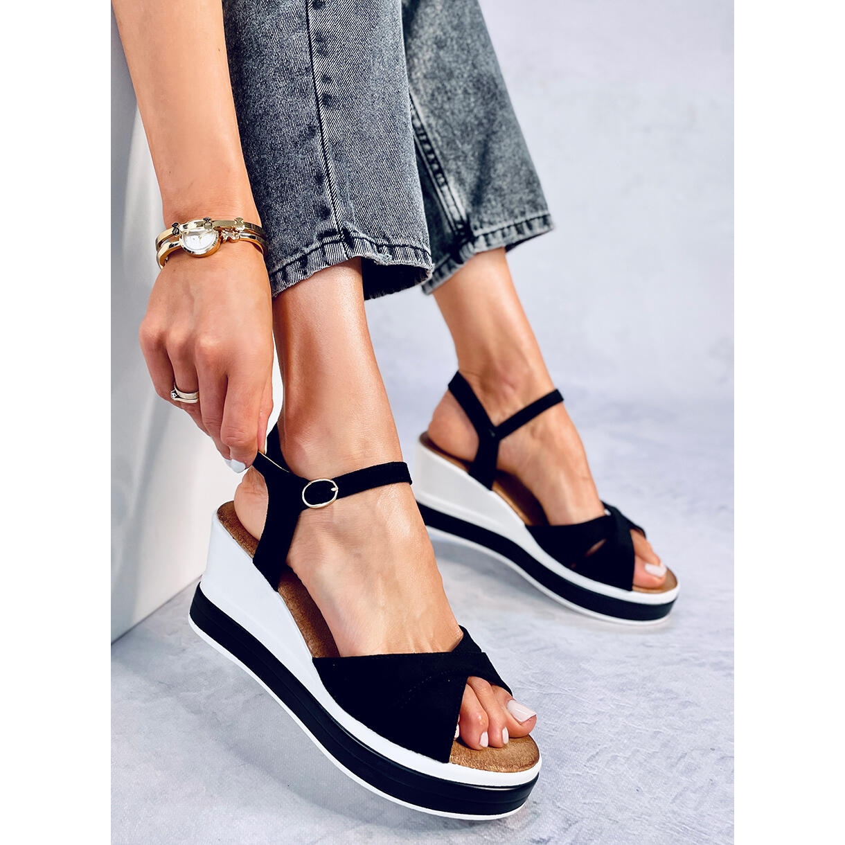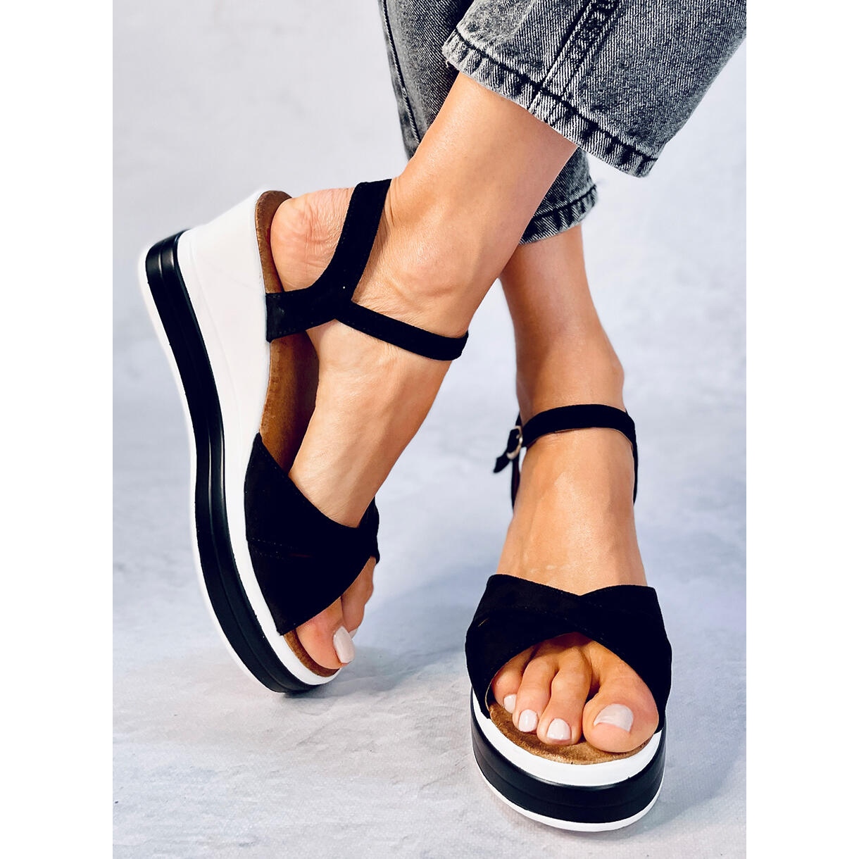 Les sandales compensées Winkler Black sont des chaussures légères pour femmes sur une plateforme plus haute. Leur caractéristique est une cale de 7,5 cm avec une plateforme de 3 cm, qui assure une stabilité adéquate. Ils sont dans une couleur noire tendance. Le fermoir est réglable, ce qui permet d'adapter les chaussures à la forme de votre pied et met en valeur la cheville. Ils sont fabriqués en daim écologique, ce qui souligne leur caractère moderne. Ils ont une semelle synthétique et pas de bout. Ils sont vendus dans l'emballage d'origine du fabricant. Leur poids avec l'emballage est de 0,7 kg. Le coin mesure 7,5 cm de haut et constitue un talon classique et uniforme. La semelle intérieure est en cuir écologique. Ces sandales sont une proposition pour les femmes qui apprécient les chaussures élégantes mais en même temps confortables. Ils n’ont aucun motif, ce qui en fait un choix universel qui convient à de nombreux styles.