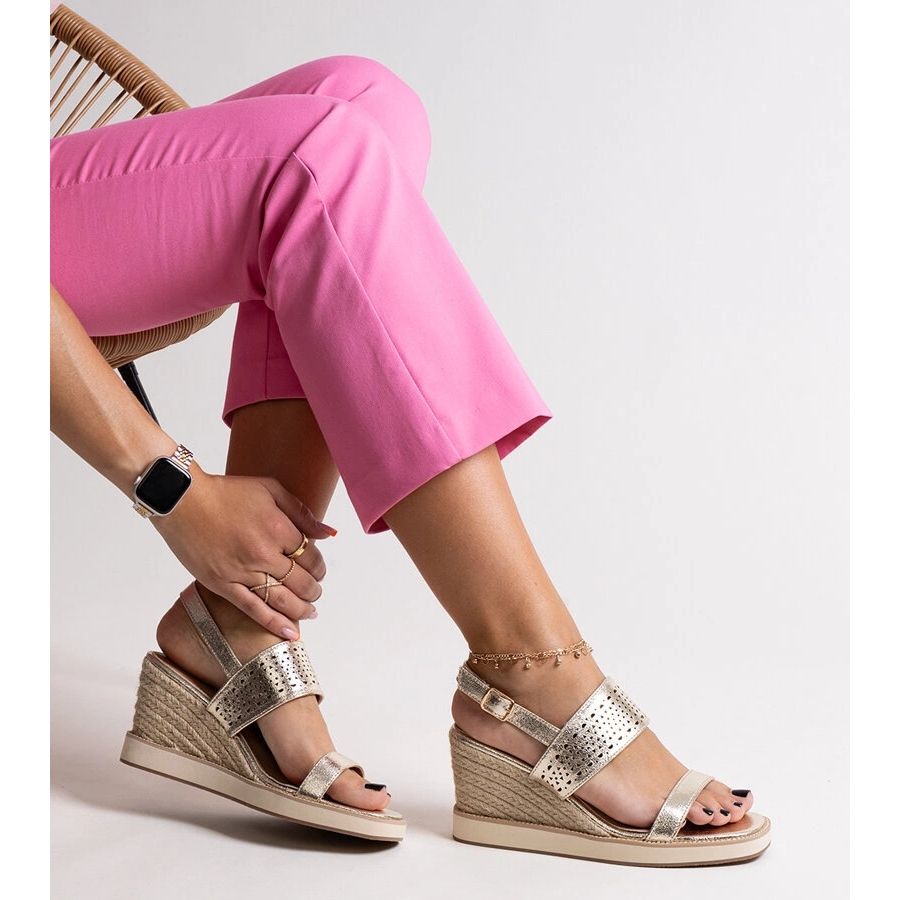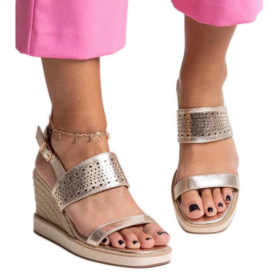 - Modèle: 7210 Sandales espadrilles compensées dorées