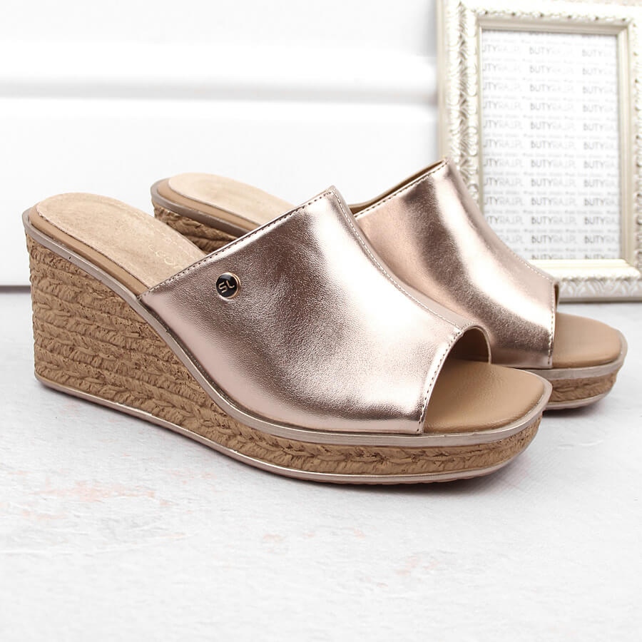 Les sandales compensées pour femmes d'une couleur dorée éclatante de la célèbre marque Sergio Leone sont le choix parfait pour toutes les femmes qui souhaitent allier confort et élégance. Le modèle KL213 se distingue non seulement par son design moderne, mais aussi par sa fabrication soignée à partir de matériaux de haute qualité.