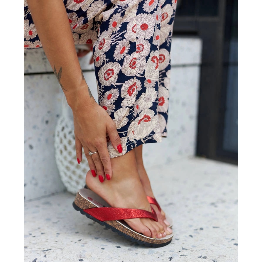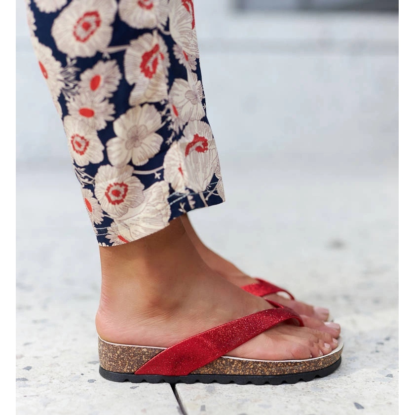 Le produit que nous devons décrire est le chausson compensé Isidoro rouge. Ils sont fabriqués dans une couleur rouge vif et scintillante qui attire le regard et leur ajoute en même temps du charme et du style. Ce sont des tongs conçues pour les femmes. Ils ont des tailles standard pour femmes, nous vous suggérons de prêter attention au tableau des tailles.