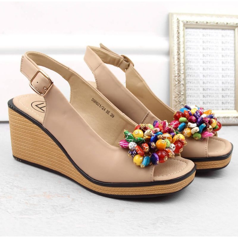 Détails: Sandales compensées en cuir avec perles colorées Filippo W PAW528 beige