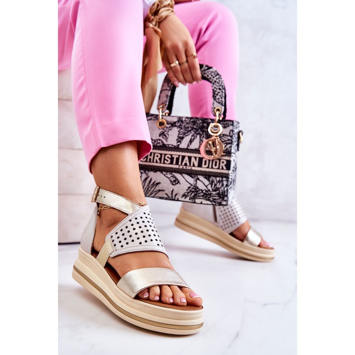 Maciejka Sandales Compensées en Cuir Maciejka 05356-25 Beige et Or d'or