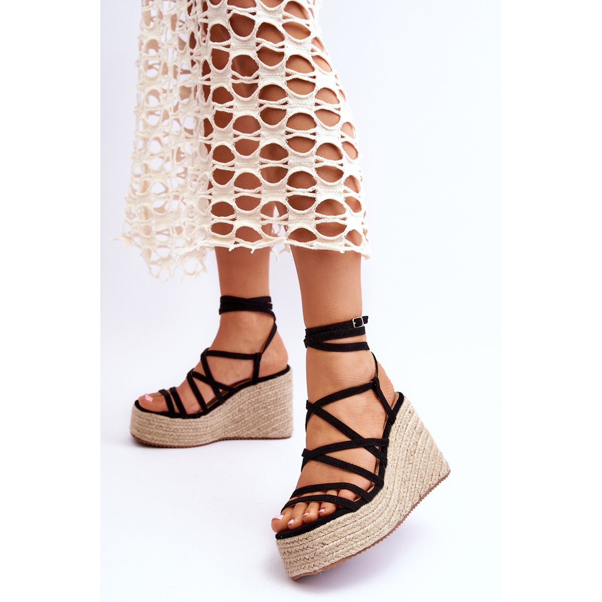 Le noir est la couleur de l'élégance et de l'universalité - c'est ce que proposent les sandales compensées en cuir. Ces chaussures d'été parfaitement confectionnées allieront confort et style, ajoutant de la classe à tout style estival.