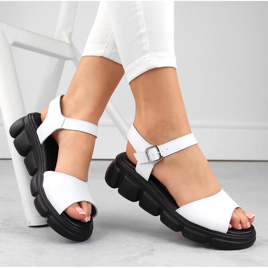 Détails: Sandales compensées en cuir pour femmes, blanches, Vinceza 7884