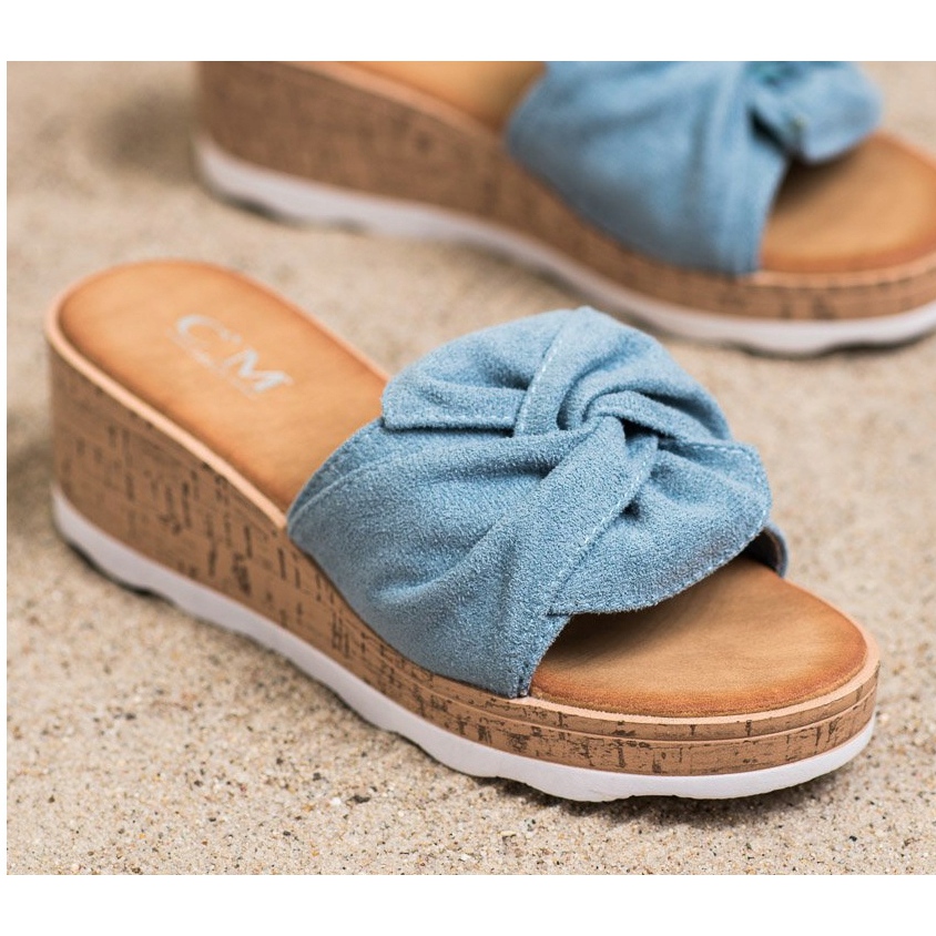 Nous vous présentons des mules compensées en daim uniques de la célèbre marque Cm Paris, qui s'intègrent parfaitement dans le style décontracté du printemps et de l'été. Dans une belle teinte bleue, ces chaussures élégantes sont un choix parfait pour les femmes qui apprécient le confort et un look tendance.