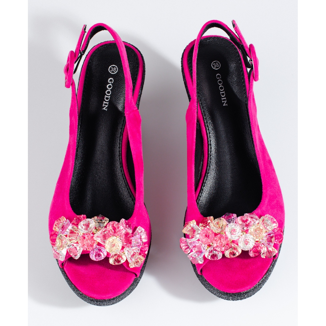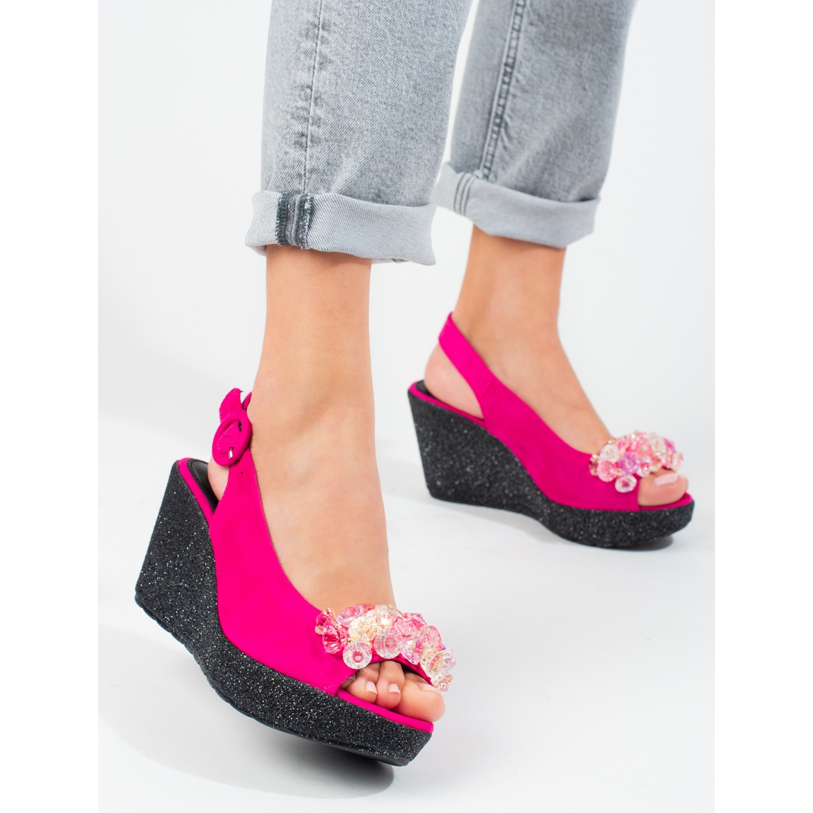 Détails: Sandales compensées en daim rose Shelovet, femmes