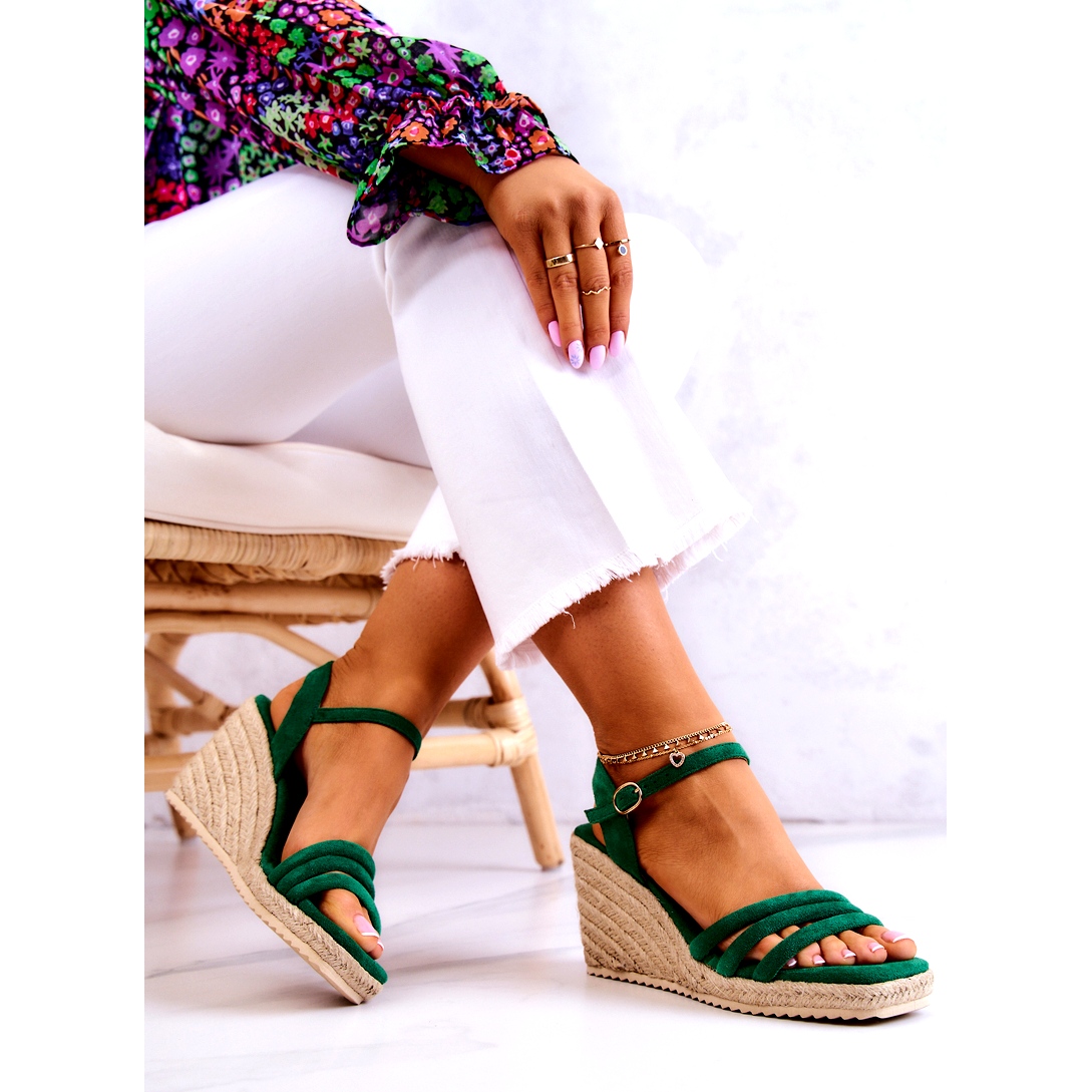Nous vous présentons des sandales compensées FJ1 extrêmement élégantes et confortables dans une belle couleur vert Louisiane. Ces chaussures élégantes, fabriquées en suède écologique de haute qualité, seront un choix parfait pour les journées d'été. Grâce au bout carré ouvert et à la bride réglable fixée à la cheville, vous obtenez non seulement un look attrayant, mais aussi un confort de port.