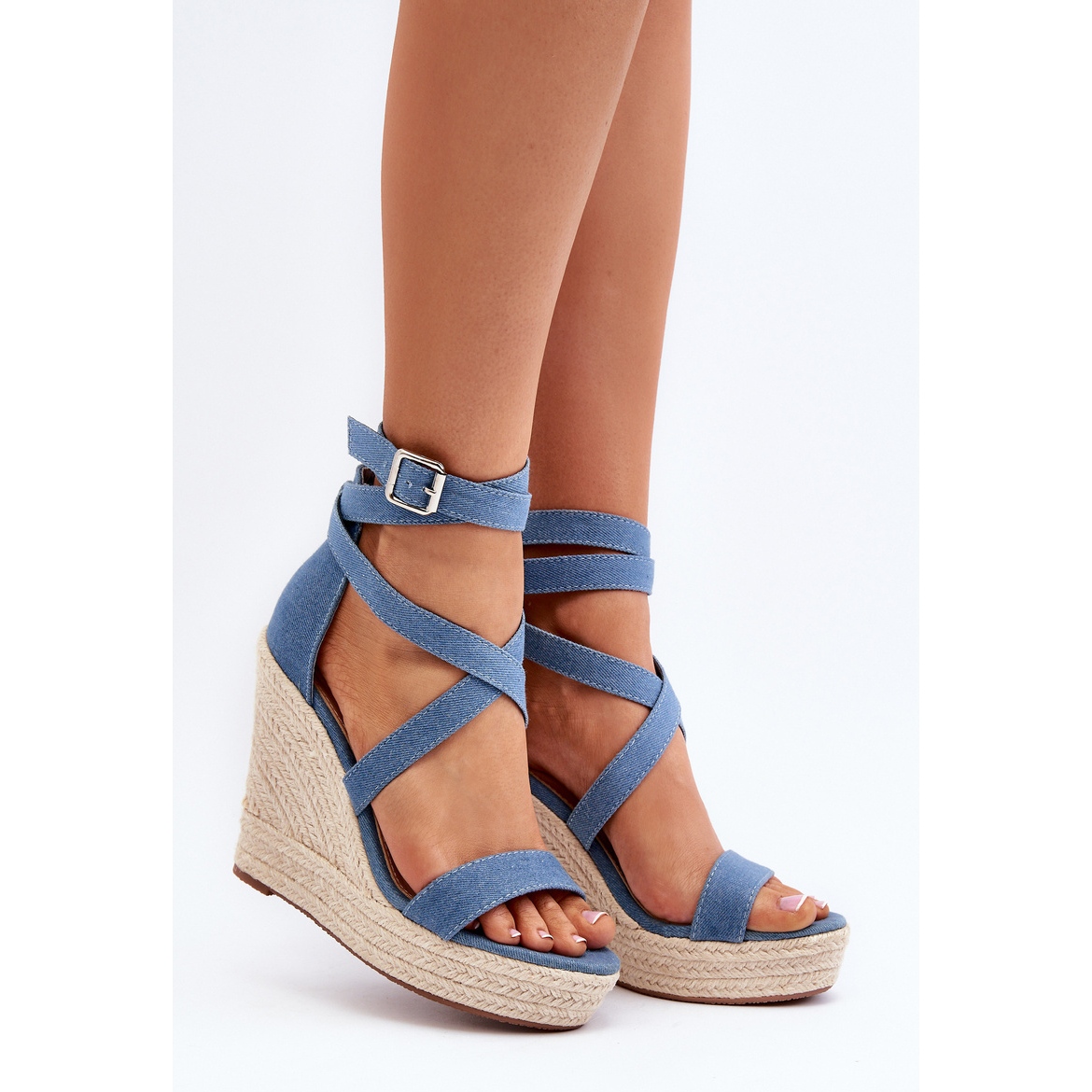 Détails: Sandales compensées en jean avec galon, Bleu Salthe