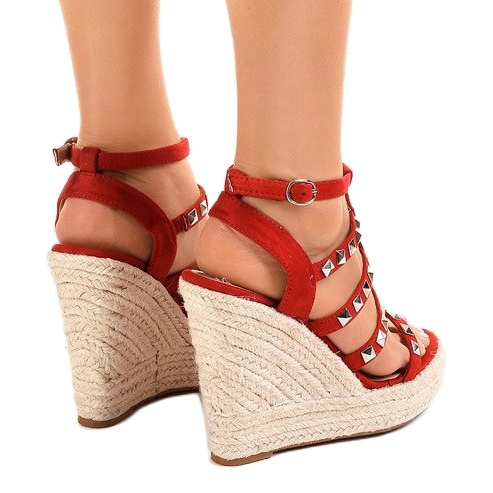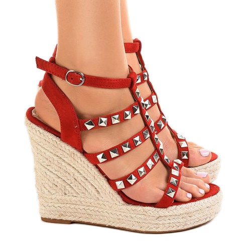 Choisissez les sandales compensées en paille rouge 9529 pour éblouir avec style et confort à chaque pas !