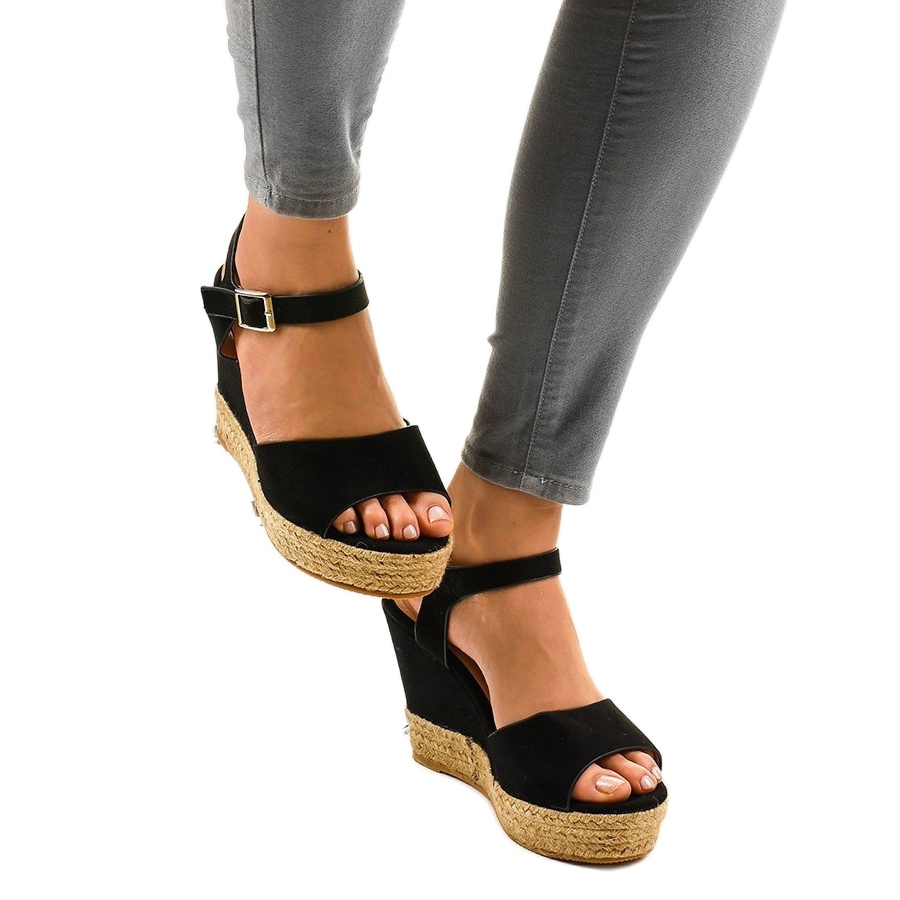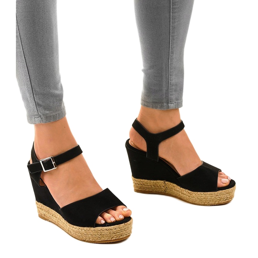 Les sandales compensées espadrilles noires 9R195 sont un choix parfait pour les femmes qui souhaitent allier élégance et confort. Ces chaussures élégantes seront le compagnon idéal aussi bien pour les promenades estivales à la plage que pour les sorties en ville.