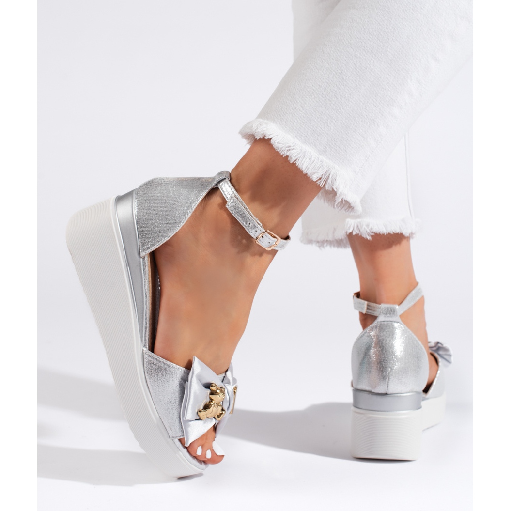 Seastar Seastar Sandales compensées femme argentées avec nœud