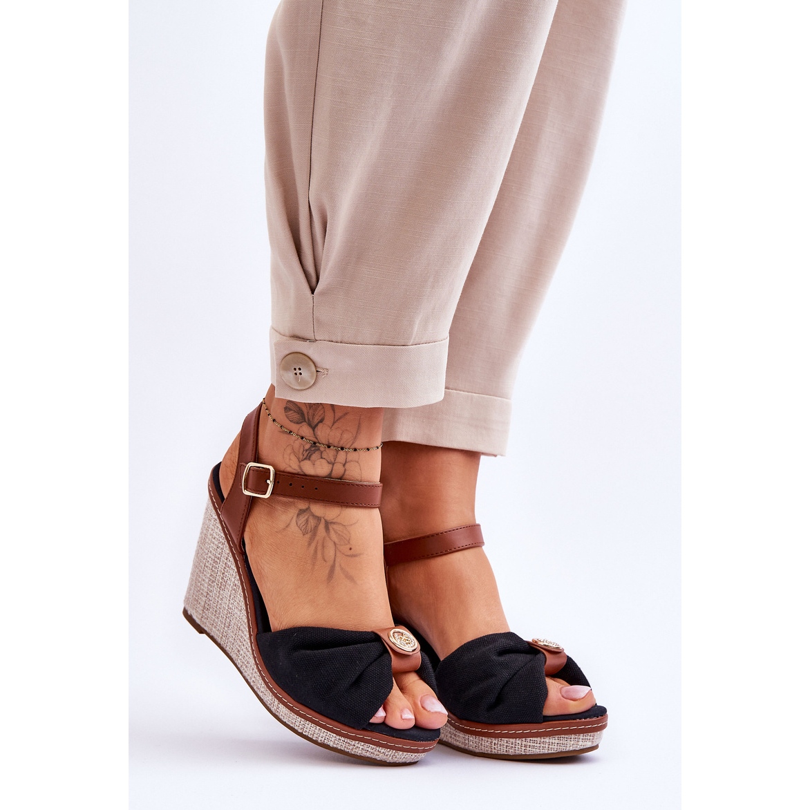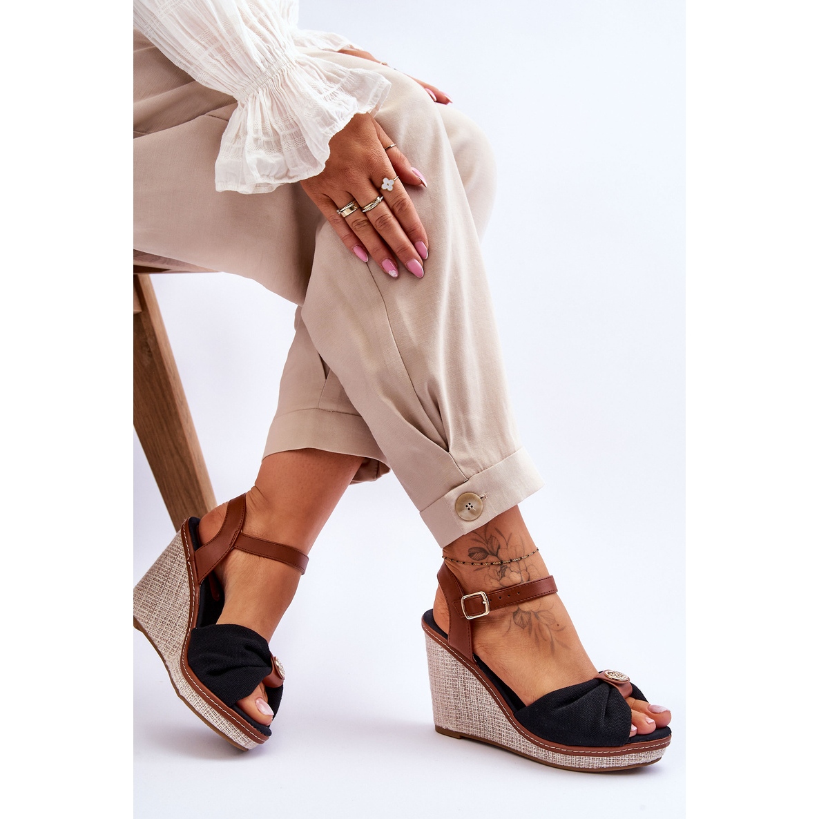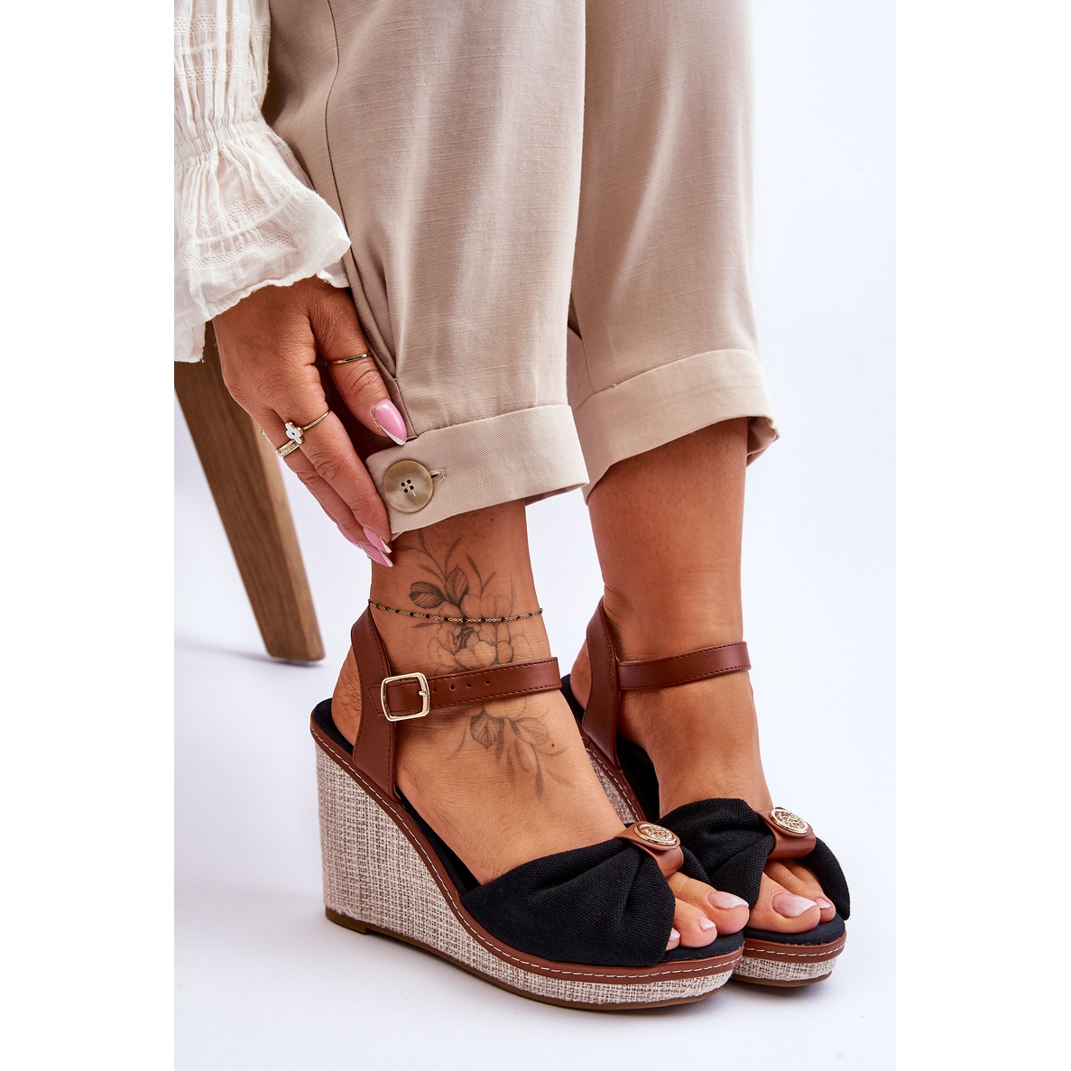 Détails: Sandales Compensées Femme Avec Décoration Noir Candice le noir