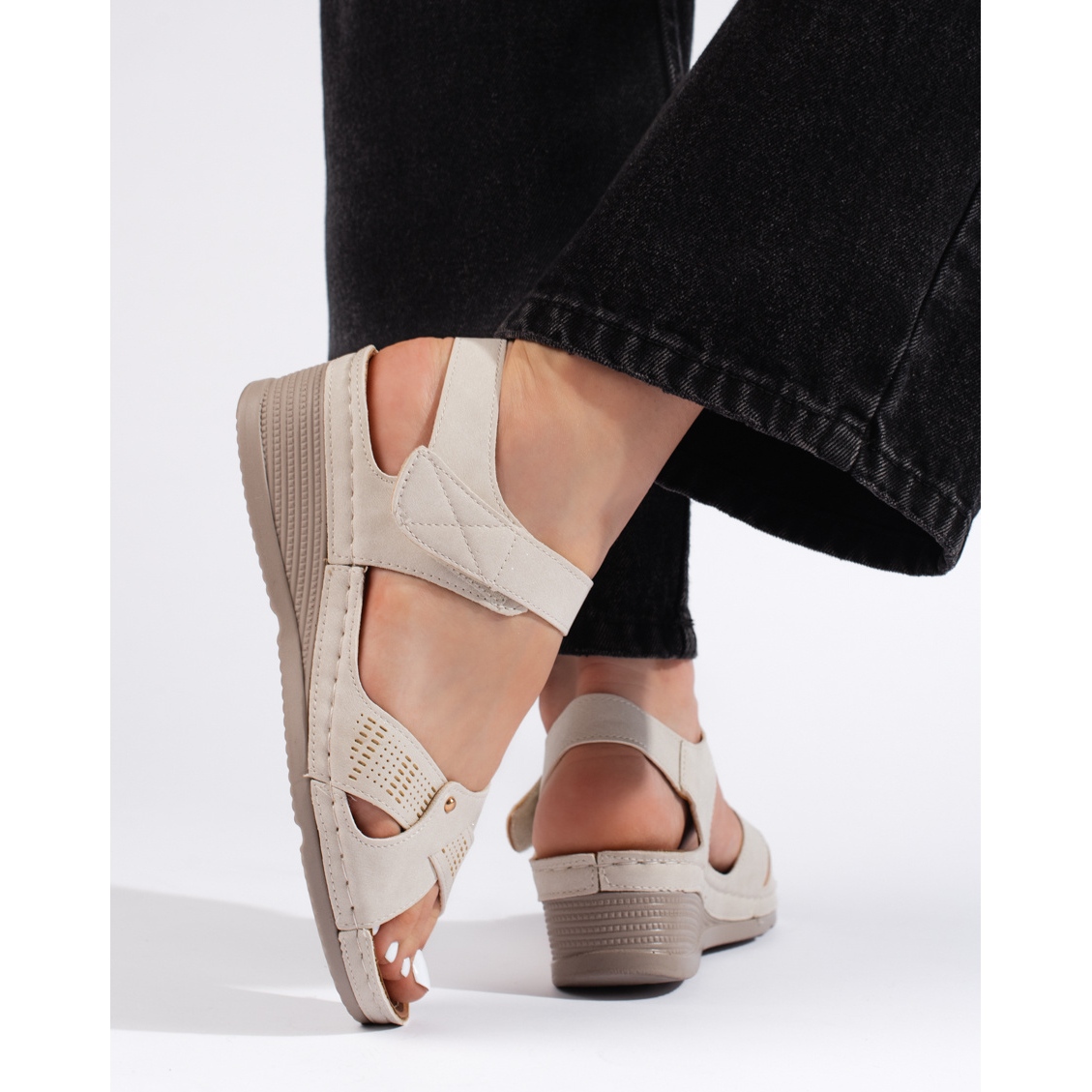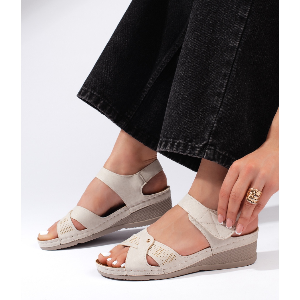 Les sandales compensées beiges à velcro pour femmes sont une combinaison parfaite de style classique avec une touche de mode contemporaine.
