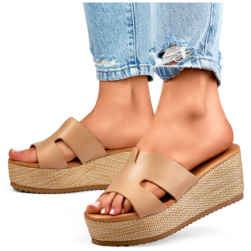 Un type de talon sous la forme d'une koturna de 7 cm de haut ajoute de l'élégance et de la légèreté, et en même temps se soucie du confort des pieds. Grâce à l'orteil ouvert et à l'insertion, les mettre est rapide et simple, ce qui en fait le choix parfait pour les jours actifs. La couleur beige s'inscrit parfaitement dans les tendances actuelles et se mélange également bien avec diverses stylifications - des combinaisons occasionnelles à plus élégantes.