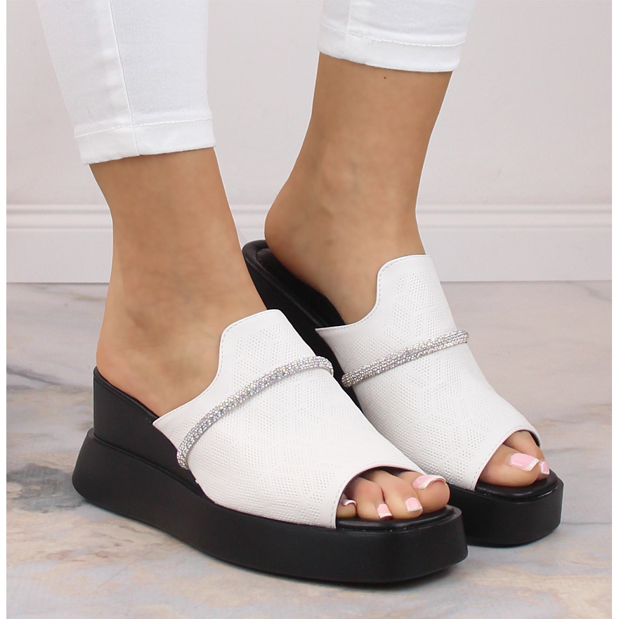 **Présentation du produit : M. DASZYŃSKI Mules compensées blanches pour femme M.Daszyński SA209-2**