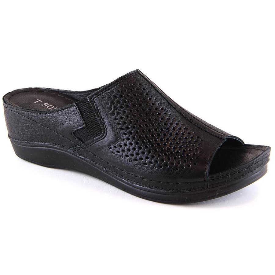**Tongs compensées en cuir noir avec bande élastique pour femme T.Sokolski L22-518 – Confort et style en un**