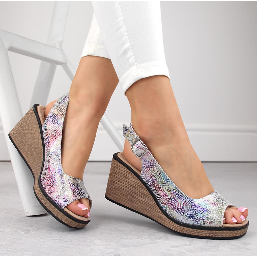 - Modèle: Sandales compensées en cuir pour femme, multicolores