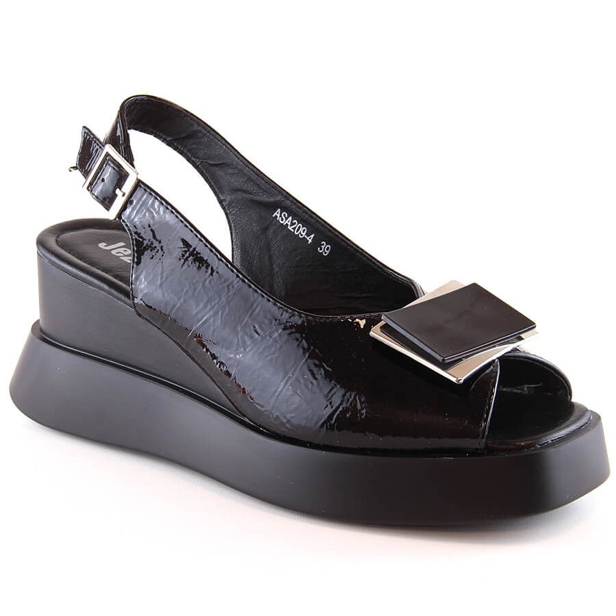 Sandales compensées femme laquées noires Jezzi SA209-4