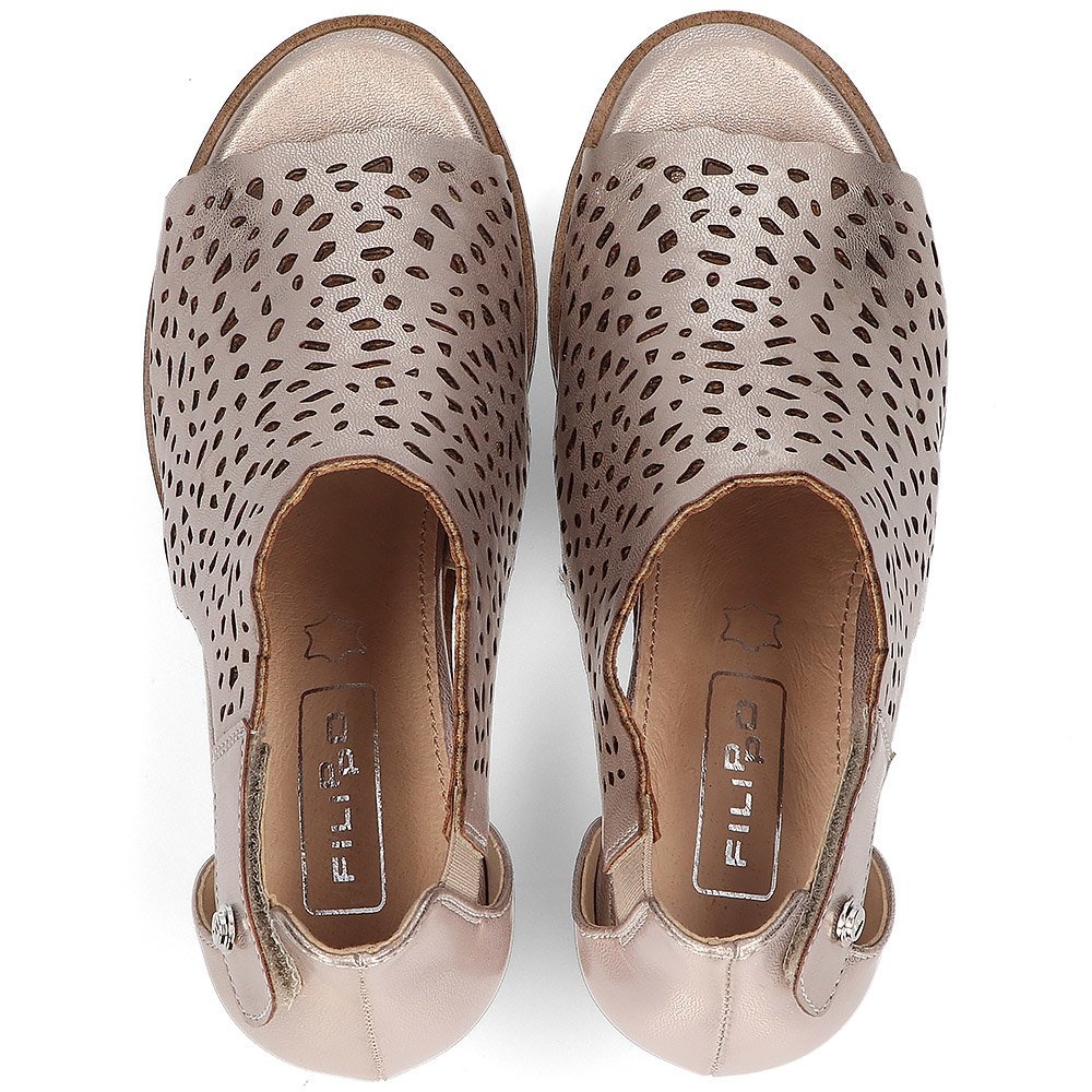 Découvrez l'élégance et le confort avec les sandales compensées Filippo DS2074/21 GO dans une belle nuance métallique d'or. Ces sandales classiques sont le choix parfait pour les femmes modernes qui apprécient le style et le confort au quotidien.