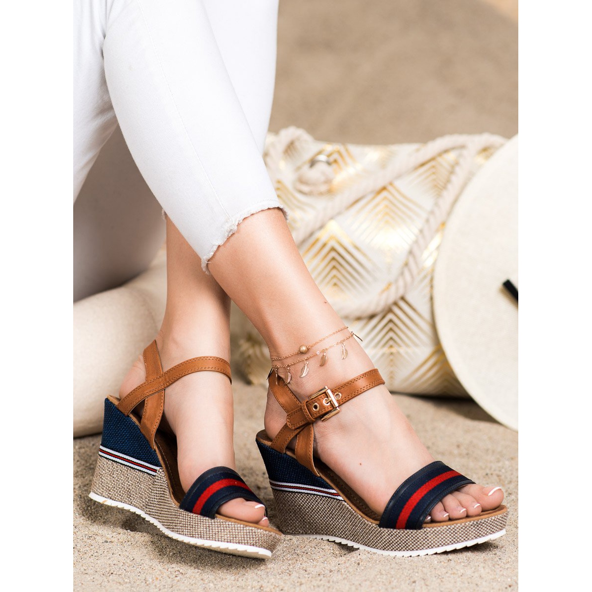 Détails: Goodin Sandales compensées brun bleu marin multicolore
