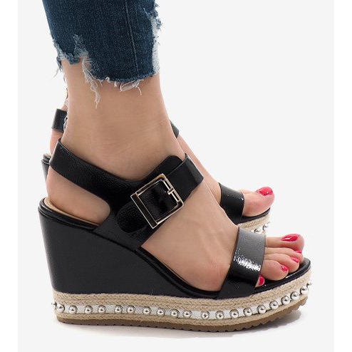 Inna marka Sandales compensées laquées argent 17060-73 le noir